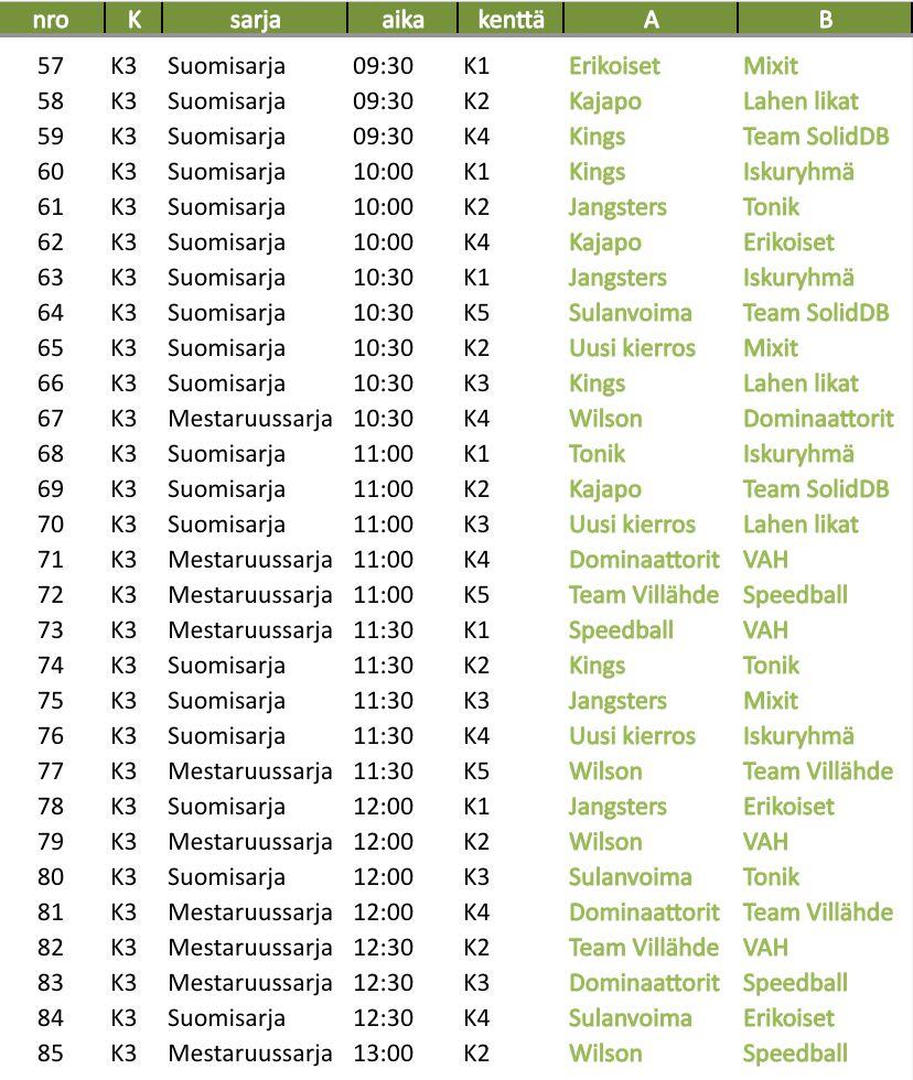 Otteluohjelma: III kierros, pelipäivä lauantai 1.11.